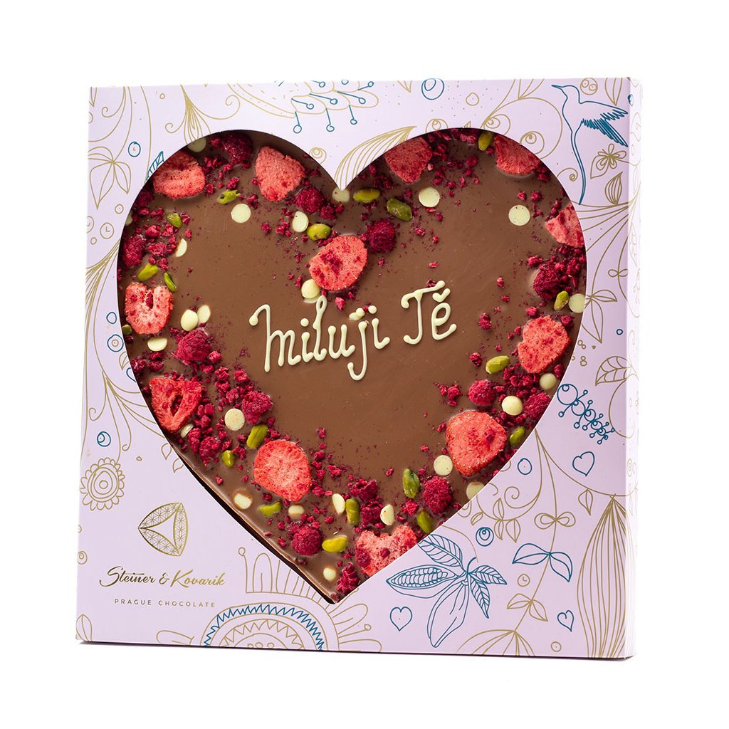 Velké srdce z mléčné čokolády s nápisem Miluji Tě, 500g