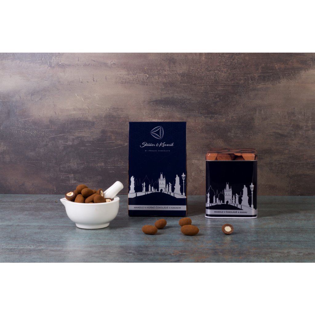 Dark chocolate (min. 70%): cocoa solids content at least 53% (cocoa mass, sugar, cocoa butter, emulsifier: soy lecithin, aroma: natural vanilla, emulsifier: E476), roasted almonds - kernels (min. 17%), cocoa powder (min. 0.7%). May contain milk, peanuts and dry nuts. Store in a cool, dry place. Made by hand in the Czech Republic.