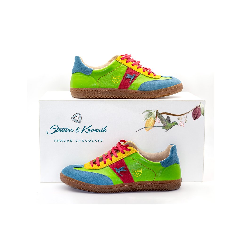 These sneakers were created through the natural connection between two Czech brands that share the same values. Steiner Kovarik decided to buy their own plantations in Bolivia to reduce their dependence on cocoa price speculation. We believe in going deeper and deeper. We know that in business and personal development, it is possible to improve and grow not only in a material way. That is why we decided to join forces with Botas and Vasky, whose philosophy is very similar. The desire to develop, but not at any cost. The desire to pass on something that would not be here and that could disappear. Wanting to be joyful and creative. These are just a few highlights from our collaboration. After all, during the First Republic, Czechoslovakia was a powerhouse in chocolate production as well as in the honest craft of shoemaking.