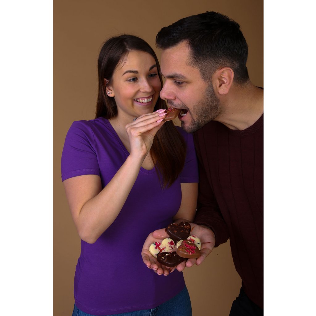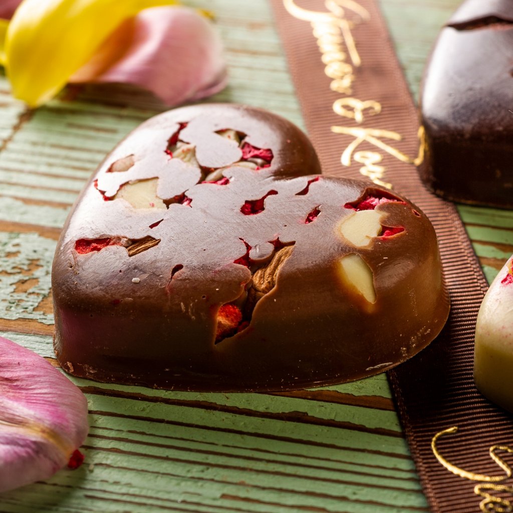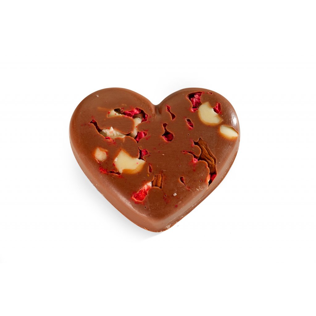 A novelty of our assortment is a cute little heart from our best milk chocolate Steiner & Kovařík into which lyophilized raspberries and almonds are poured. It creates a unique attractive and modern design that will definitely please everyone as a gift.