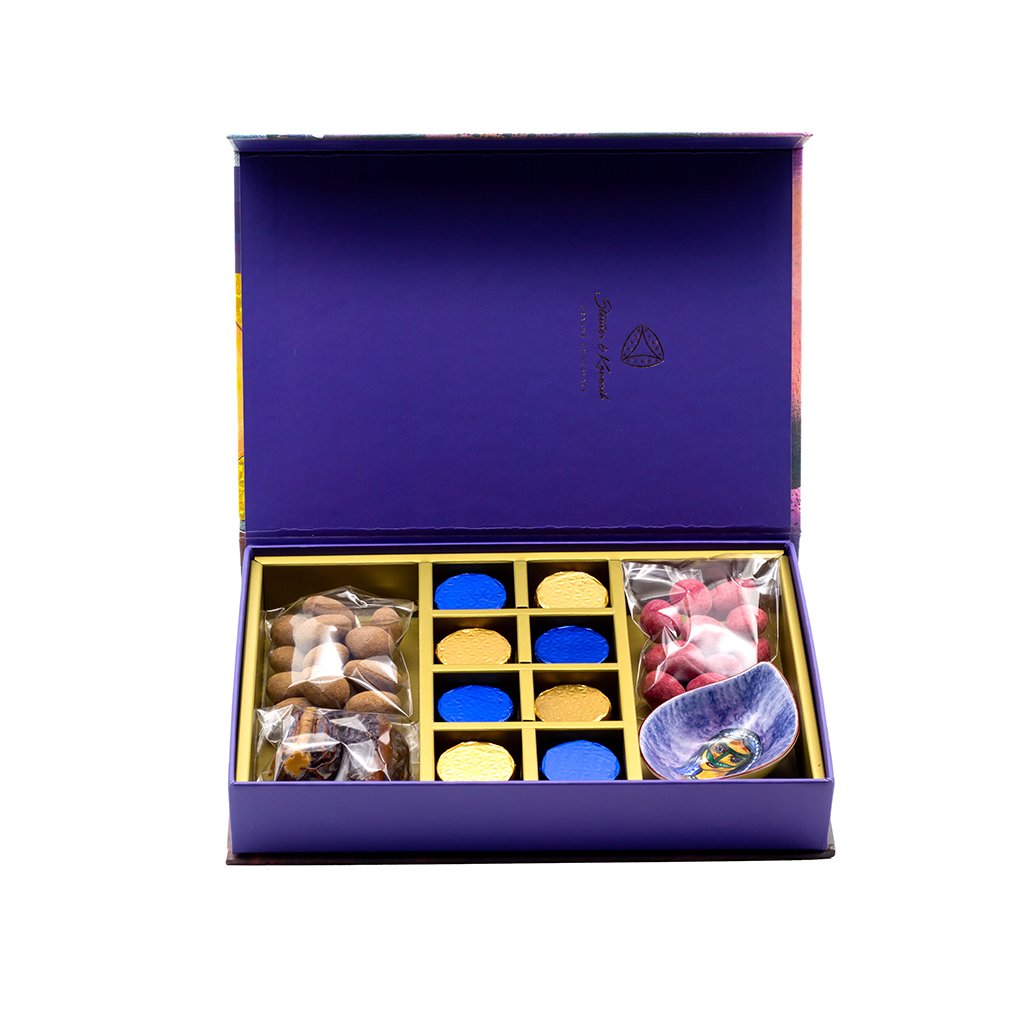 Ingredients: milk chocolate (min. 70%): cocoa solids content at least 35% (sugar, cocoa butter, whole milk powder, cocoa beans, emulsifier: sunflower lecithin, flavoring: natural vanilla), roasted almonds – kernels (min. 17%), spice mix min. 0.7% (Ceylon cinnamon, cardamom, ginger, star anise, cloves, black pepper). May contain nuts.