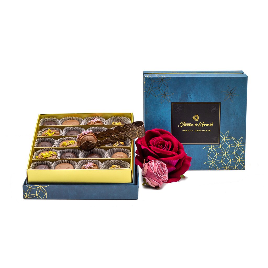 Z nejlepší čokolády a vybraných náplní jsme pro Vás vytvořili něco opravdu unikátního. Krabičku dvaceti kusů výběrových pralinek naplněných těmi nejlepšími ingrediencemi. Vznikla tak kolekce která je nejen vhodná na mlsání, ale díky kouzelnému balení i jako krásný dárek.