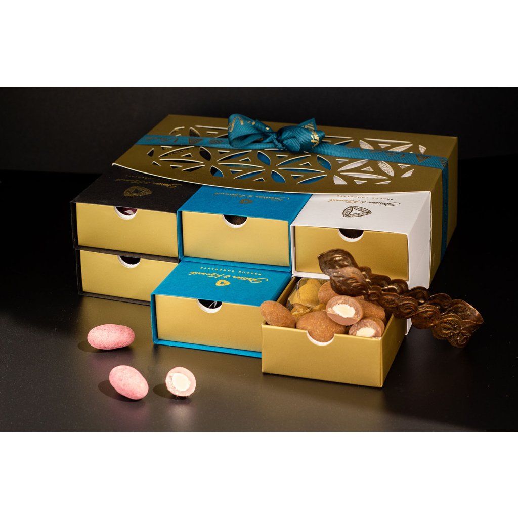 Hledáte elegantní vánoční dárek? Máme pro vás tři oblíbené příchutě mandliček a pomeranče v čokoládě v luxusních vánočních krabičkách, a to hned dvakrát.