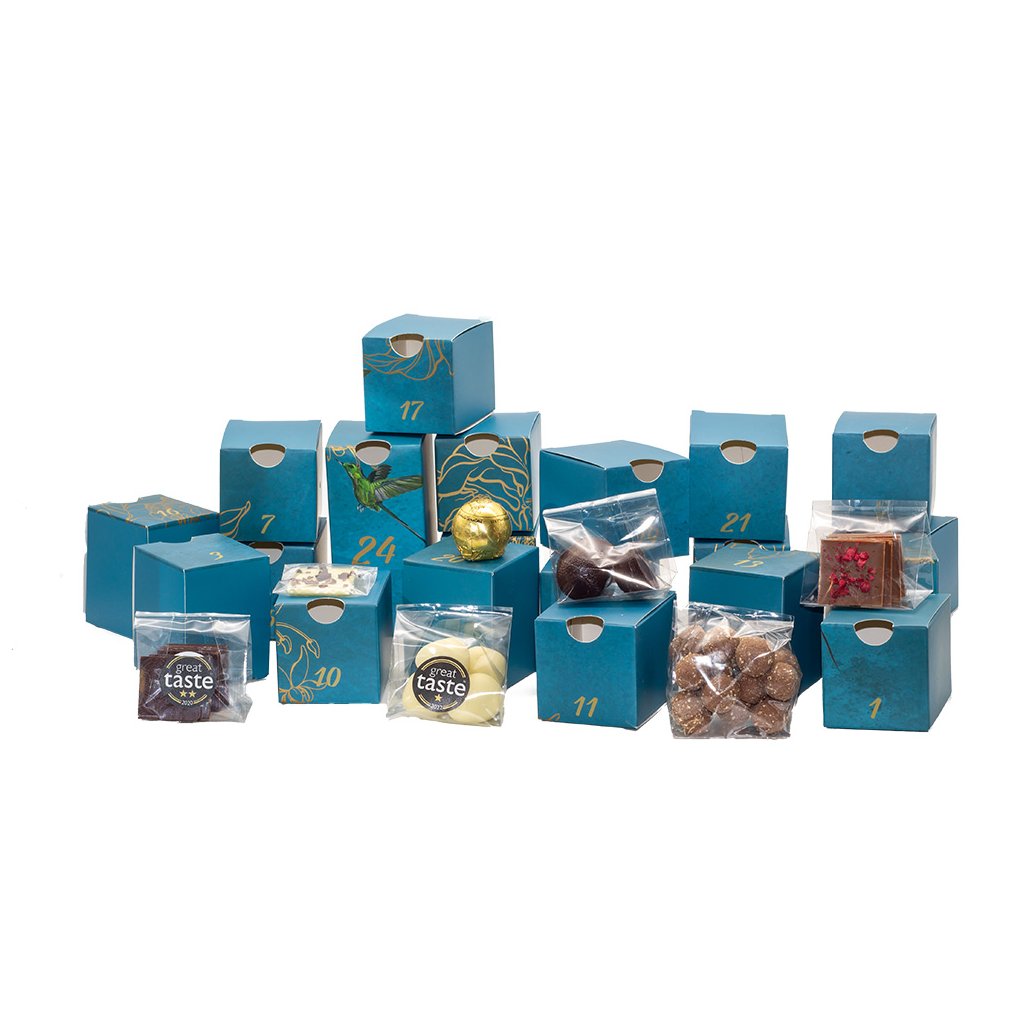 I letošní Vánoce s námi můžete mít ve velkém stylu a hojnosti. Máme pro vás 1,5 kg našich nejlepších čokoládových dobrot schovaných v nádherném adventním kalendáři. Každý den v šuplíčku najdete dost mlsání, o které se můžete podělit s celou rodinou. Jedinečný obal vám pak zůstane pro příští roky, kdy si ho můžete sami naplnit, nebo koupit náplně od nás. Zároveň je to nádherný luxusní dárek, který potěší malé i velké labužníky.