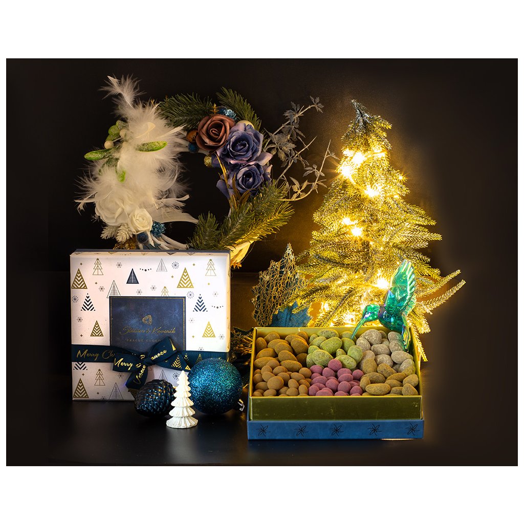 Vánoční dárková krabička BÍLÁ, 6 oblíbených druhů dražé, 300g