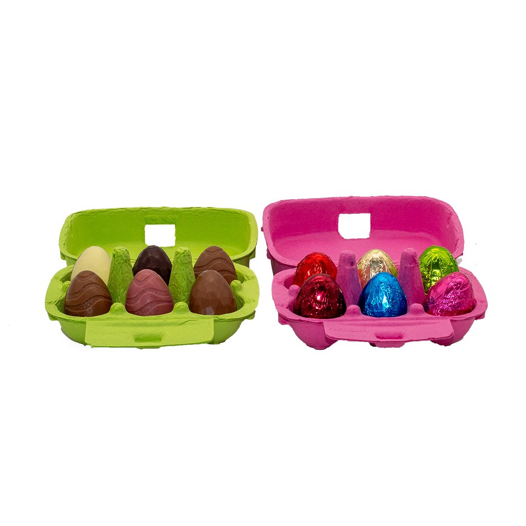 Velikonoční kolekce plněných mini čokoládových vajíček v barevných obalech přináší hravou kombinaci různých druhů čokolády a jemných náplní. V balení najdete mléčnou, bílou, hořkou i ruby čokoládu doplněnou o pistáciovou, malinovou či jemnou nugátovou náplň z piemontských lískových oříšků s kadaif. Každé vajíčko nabízí roztomilý, ale výrazný chuťový zážitek – ideální sladké potěšení pro velikonoční chvíle. 🐣🍫